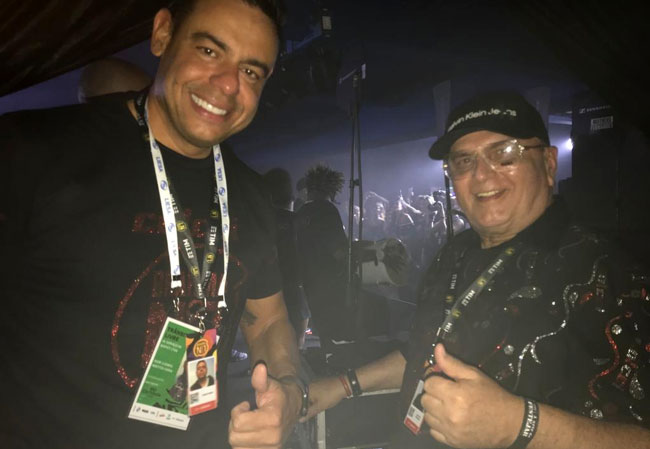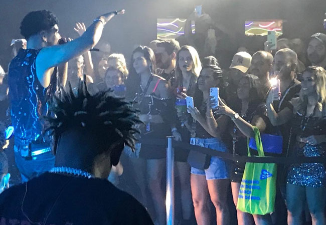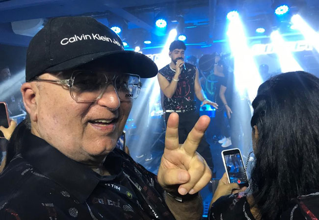 José Moraes prestigiando o show de Dilsinho (ao fundo, com o microfone)